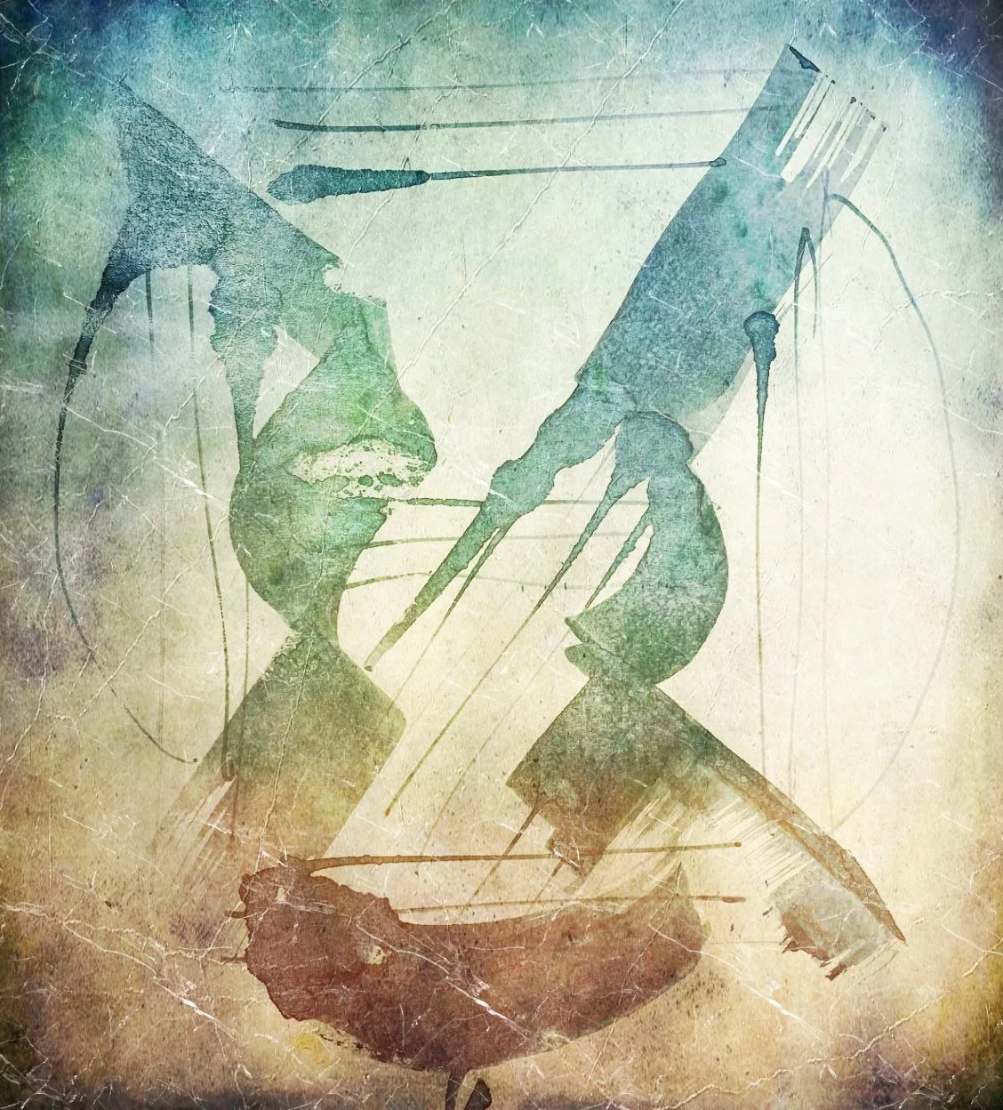 A stylized, watercolor map of Israel in blue with minimal details.
